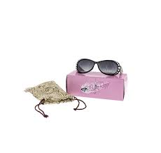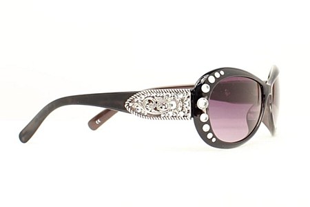 These sunglasses feature a black frame and black lenses with crystal accents and stunning rope edged side tip with just the right amount of bling on the front.