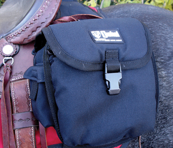"Contoured shape fits close against the cantle for a secure fit and includes two compartments with removable and washable liner