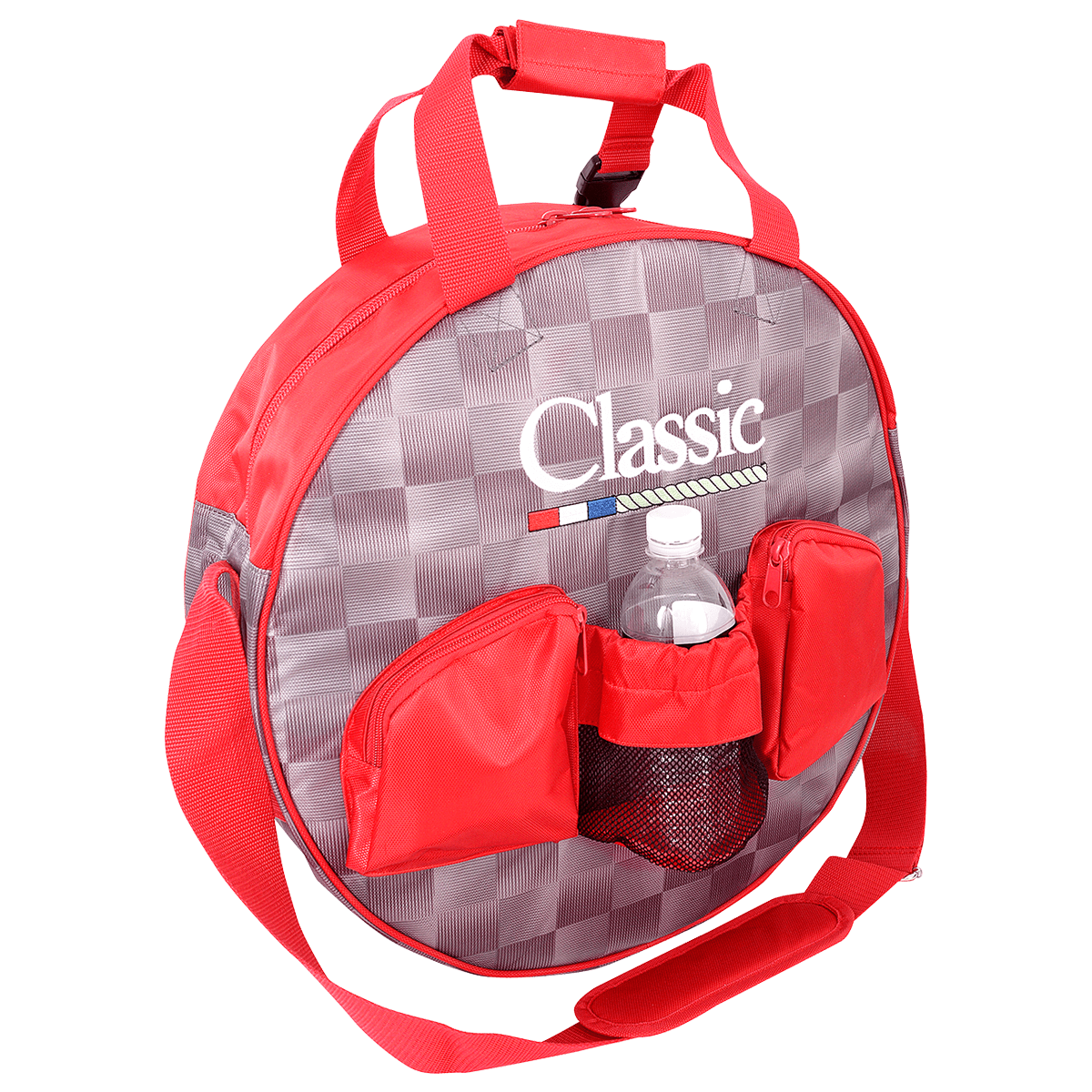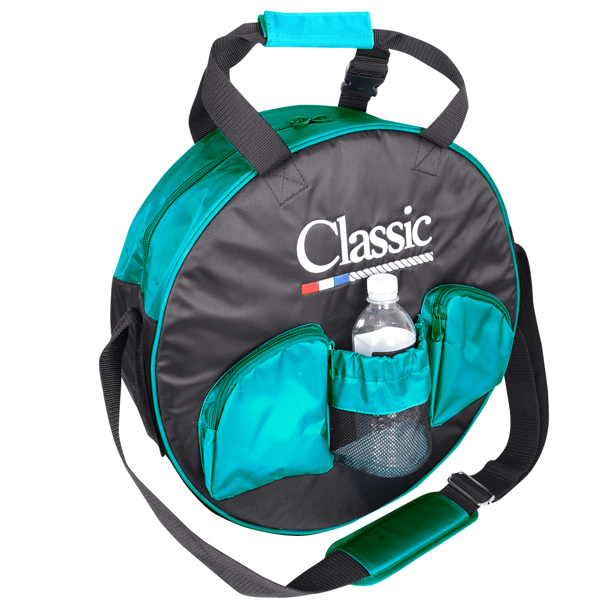 Neatly holds up to four ropes in a padded compartment and features two outside pockets and a large water bottle holder.