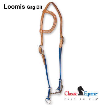 Loomis Gag bits can be used for everything from starting colts to tuning seasoned finished horses. Perfect transition to use directly following the ring snaffle by giving the rider lift and sharpness, which makes it easier to progress the young horse into side-passing and reverse-arc maneuvers. Excellent for teaching a colt to be collected and helps the rider to effectively communicate neck and body flexion. Popular training tool for barrel racers, reiners, cutters, and endurance riders. The slip ear style is available in a smooth or twisted mouthpiece. Durable blue nylon cord cheek pieces, stainless steel hardware on double stitched natural leather headstall with dots. Ready-to-use, all you need are reins.
