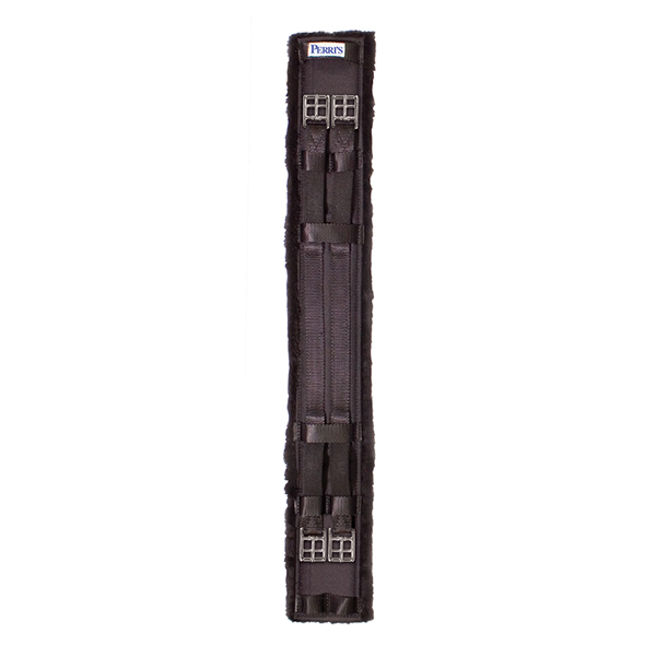 Black cotton dressage girth with fleece for added comfort. Elastic on both ends with roller buckles