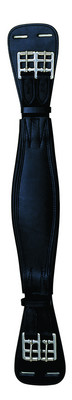 Contoured overlay girth with black double elastic on both ends. Backed with soft leather for added comfort. Stainless steel roller buckles. Amish made.
