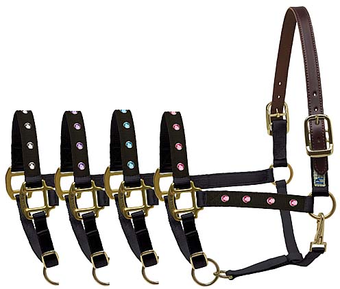Top Quality premium nylon safety halter with a replaceable leather crown, we have added some bling to our traditional nylon safety halter.