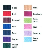 Top quality nylon, heat-sealed oblong buckle holes, box-stitching at stress points, and true-to-fit sizing. Rolled throat design on 1" sizes; flat throat design on 3/4" sizes. Brass plated hardware (except looped-on throat snap is solid brass).