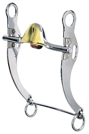 This chrome plated curb bit features a 5" copper spade mouth with roller, 9" loose cheeks and a slobber bar.